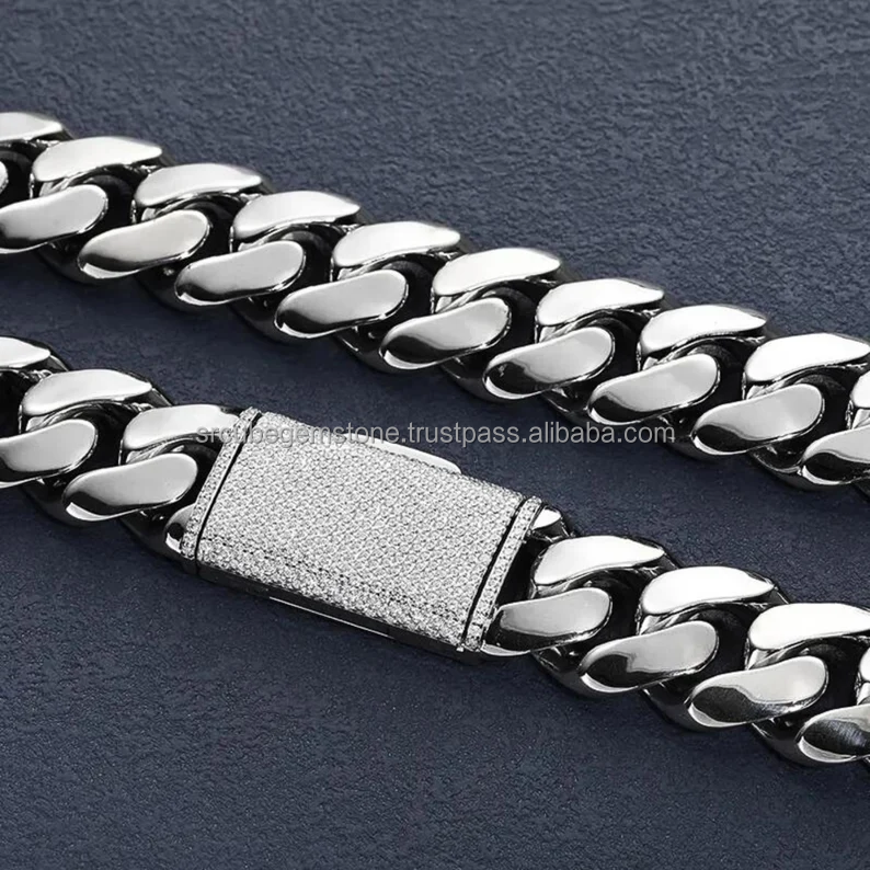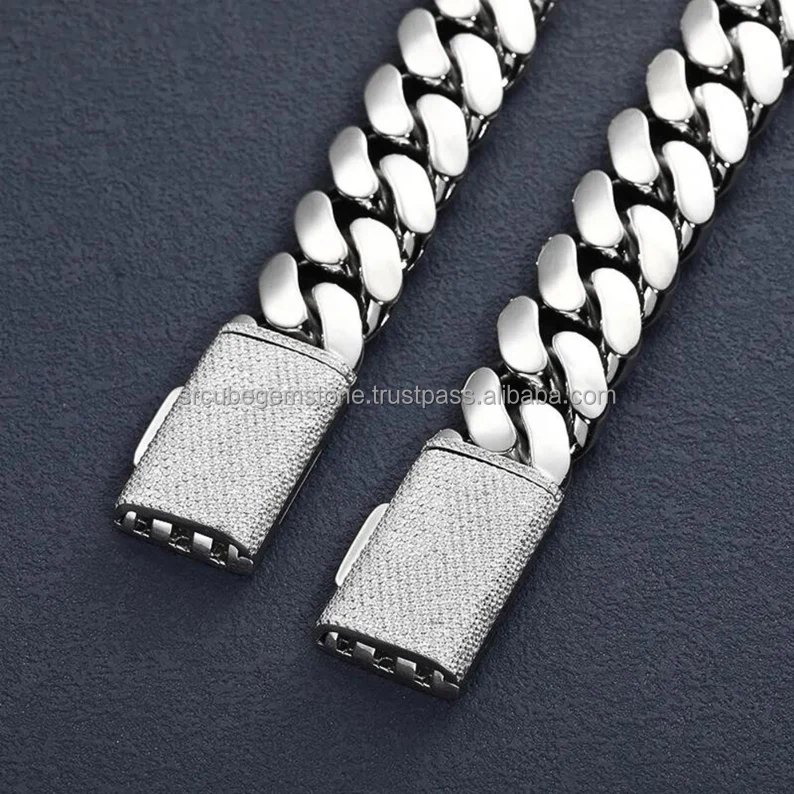 Bijoux Hip Hop personnalisés faits à la main en argent 925 12MM 24 pouces fermoir en diamant chaîne à maillons cubains Miami
