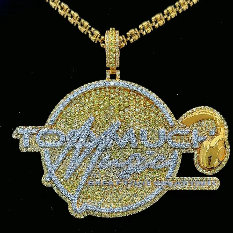 Bijoux Hip Hop personnalisés haut de gamme étincelle en argent sterling 925 plaqué or glacé couleur ronde Moissanite lettre Logo nom pendentif