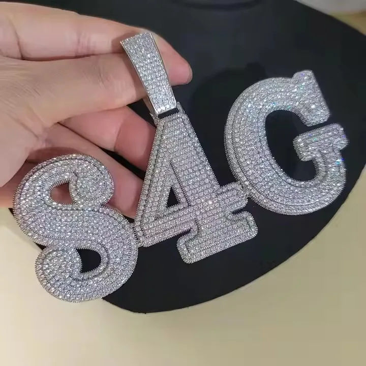 Bijoux Hip Hop personnalisés, chaîne et pendentif en argent 925 sertis de diamants, pendentif avec nom en diamant, testeur de diamant inclus