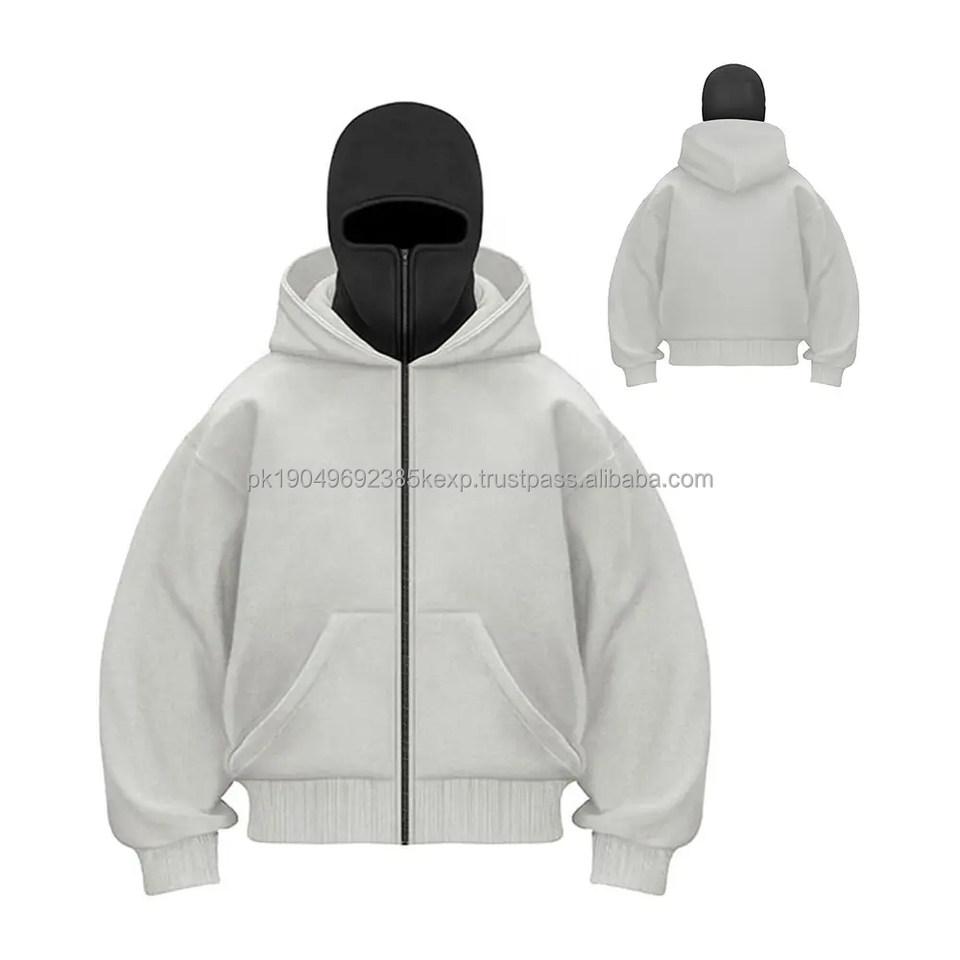 Sweat à capuche zippé en coton uni de haute qualité pour homme, style hip-hop, 500 g/m², lourd, avec capuche ninja et fermeture éclair