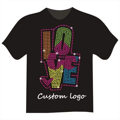 T-shirt personnalisé pour homme Hip Hop, 170 GSM, col rond, tissu tricoté, manches courtes, logo imprimé en strass, 100% polyester
