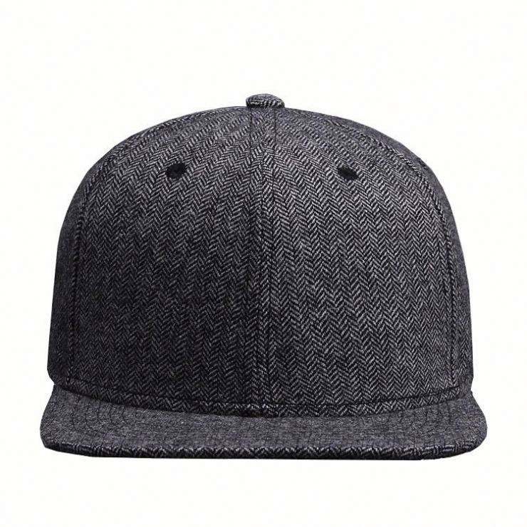 Casquette personnalisée Hip Hop Performance Sportive d'extérieur en tissu chevron 50% laine, 6 panneaux, profil moyen, visière plate, Automne Hiver