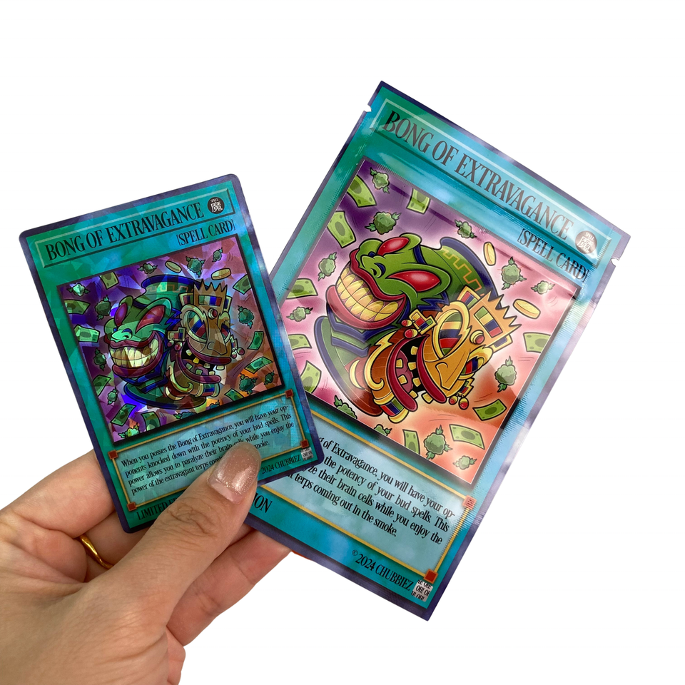 Cartes en papier holographique personnalisées avec sacs d'emballage adhésifs Sac en mylar de 3.5g Style de carte à jouer de dessin animé unique Imprimé avec logo personnalisé