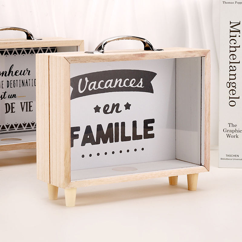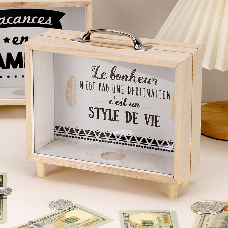 Tirelire en bois pour décoration intérieure personnalisée Tirelire transparente pour le stockage de l'argent tirelire
