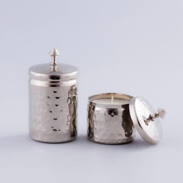 Pot à bougie en or décoratif personnalisé pour la maison avec couvercle pot en fer rempli de cire de luxe conteneur de bougie bol en métal bougeoir récipient