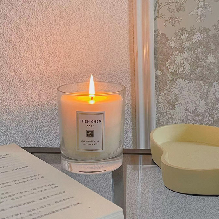 Cire de soja blanche décorative personnalisée, pot en verre givré, thé vert, parfum, bougie à mèche en bois