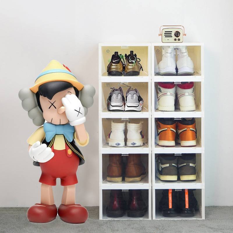 Boîtes de rangement pour chaussures personnalisées, empilables, en plastique transparent, anti-poussière, tiroirs rectangulaires, type vertical, organisateur anti-humidité