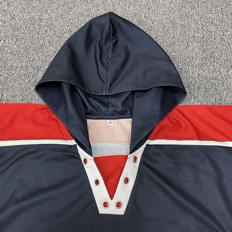 Maillot de hockey sur glace personnalisé à capuche avec cordon de serrage, service OEM, séchage rapide, respirant, imprimé par sublimation, design personnalisé, noir classique