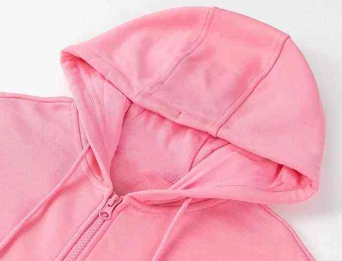 Custom Hooded Sweatshirt Casual Soft Brushed Fleece Pink Hoody Shoulder Zip up Hoodies