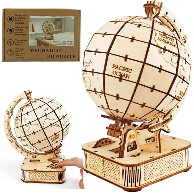 Globe terrestre rotatif créatif personnalisé, nouveau et tendance, casse-tête en bois 3D, puzzle éducatif pour enfants et adultes, ornement de bureau, jouet artisanal DIY