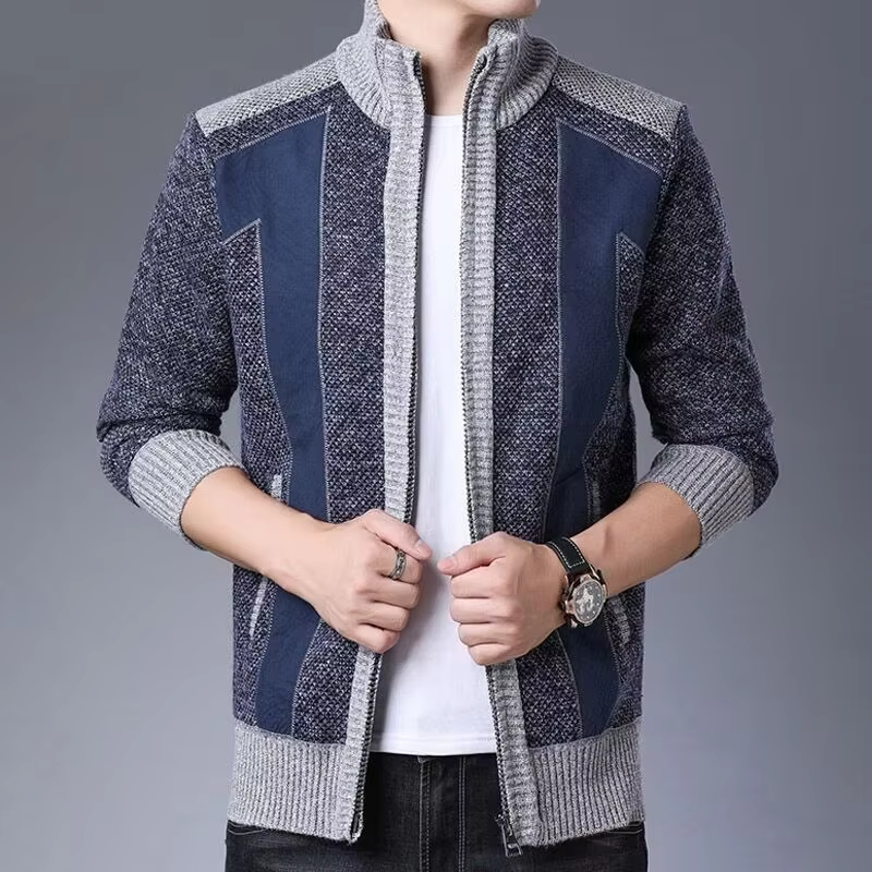 Veste élégante unie à col montant et manches longues pour homme, en tricot, avec fermeture éclair – Nouvelle collection en promotion
