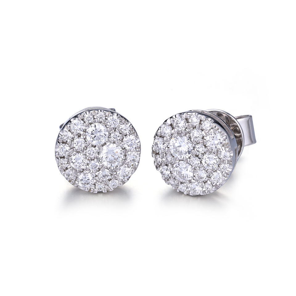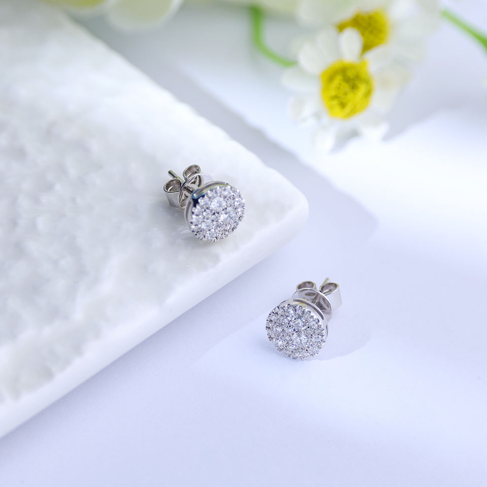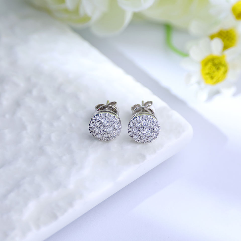 Boucles d'oreilles tendance en or blanc massif 18 carats avec diamants naturels, bijoux pour femmes, idéales pour les fêtes, les mariages, le quotidien, ou comme cadeau.
