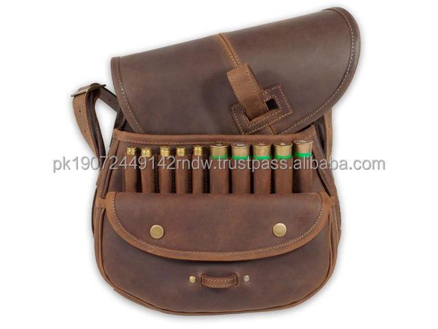 Sacs à cartouches en cuir véritable imperméables de haute qualité pour la chasse - Qualité supérieure, couleur unie