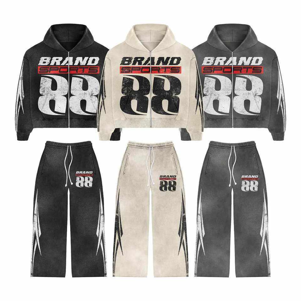 Ensembles deux pièces unisexes personnalisés très demandés, écoresponsables, style Hip Hop évasé, respirants, avec sweat à capuche et pantalon, pour l'hiver, avec impression sérigraphiée