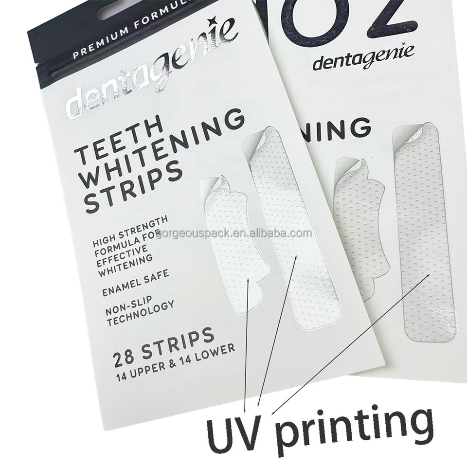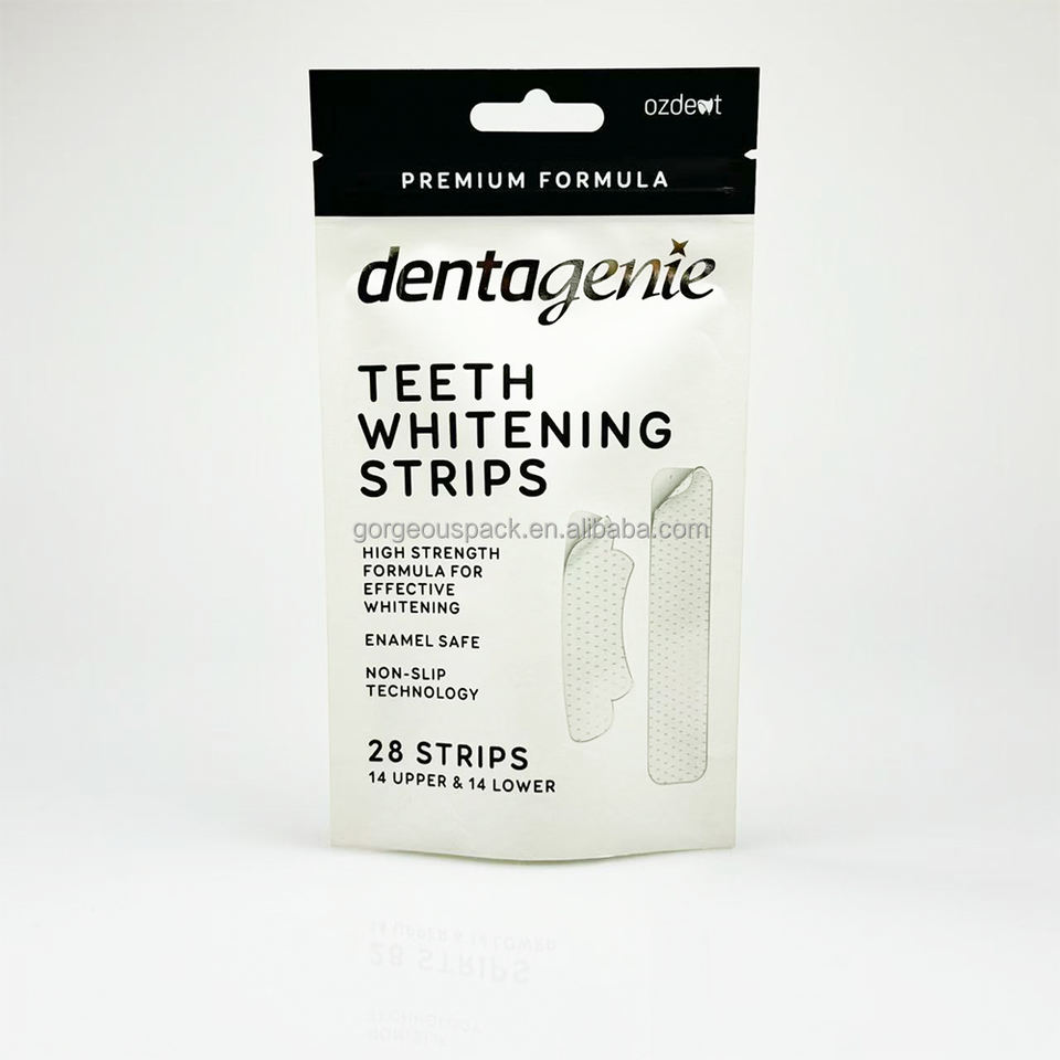 Sacs Ziplock Personnalisés en Papier Kraft Blanc Imprimés UV avec Estampage à Chaud sur Trois Côtés pour Floss, Dentifrice et Bandes Blanchissantes pour les Dents