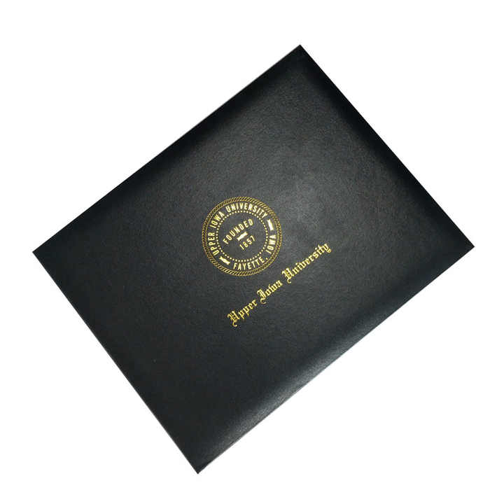Porte-documents en cuir PU noir avec logo personnalisé en estampage à chaud pour les diplômes de fin d'études - OEM et vente en gros disponibles