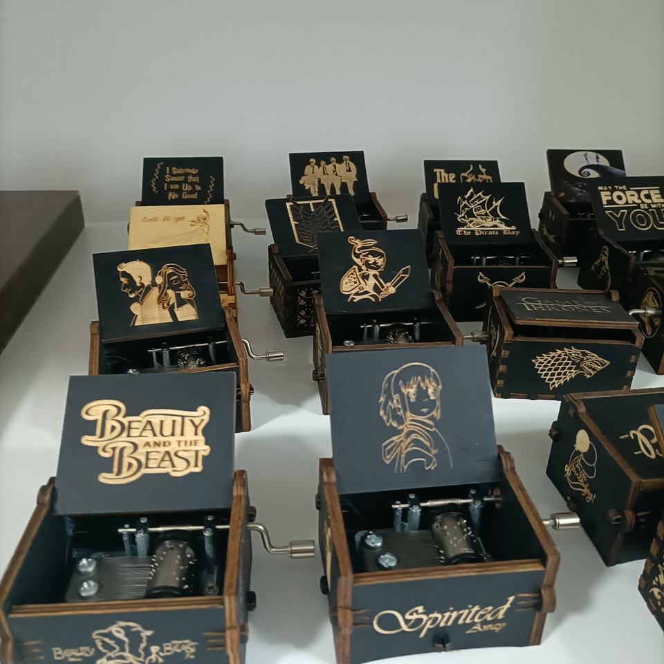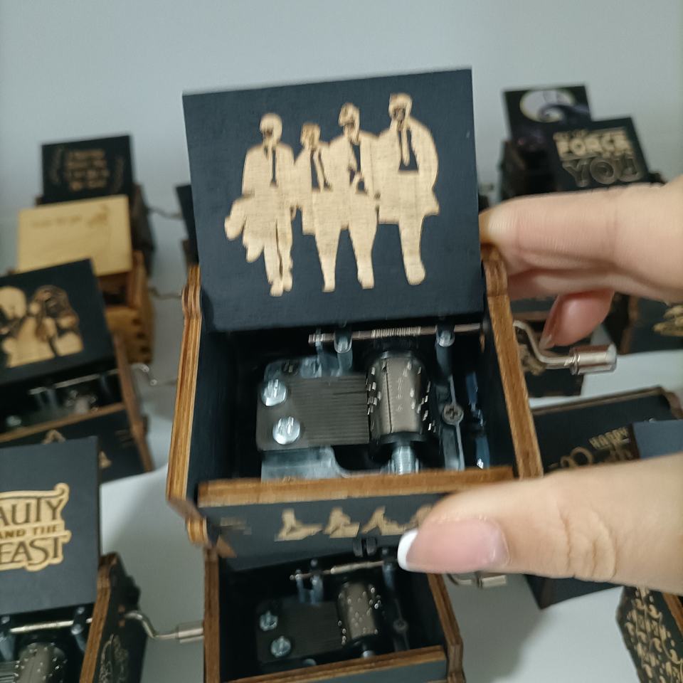 Château mobile de hurlement personnalisé bricolage boîte à musique à manivelle en bois forme carrée thème chanson manège noël nouvel an Unique