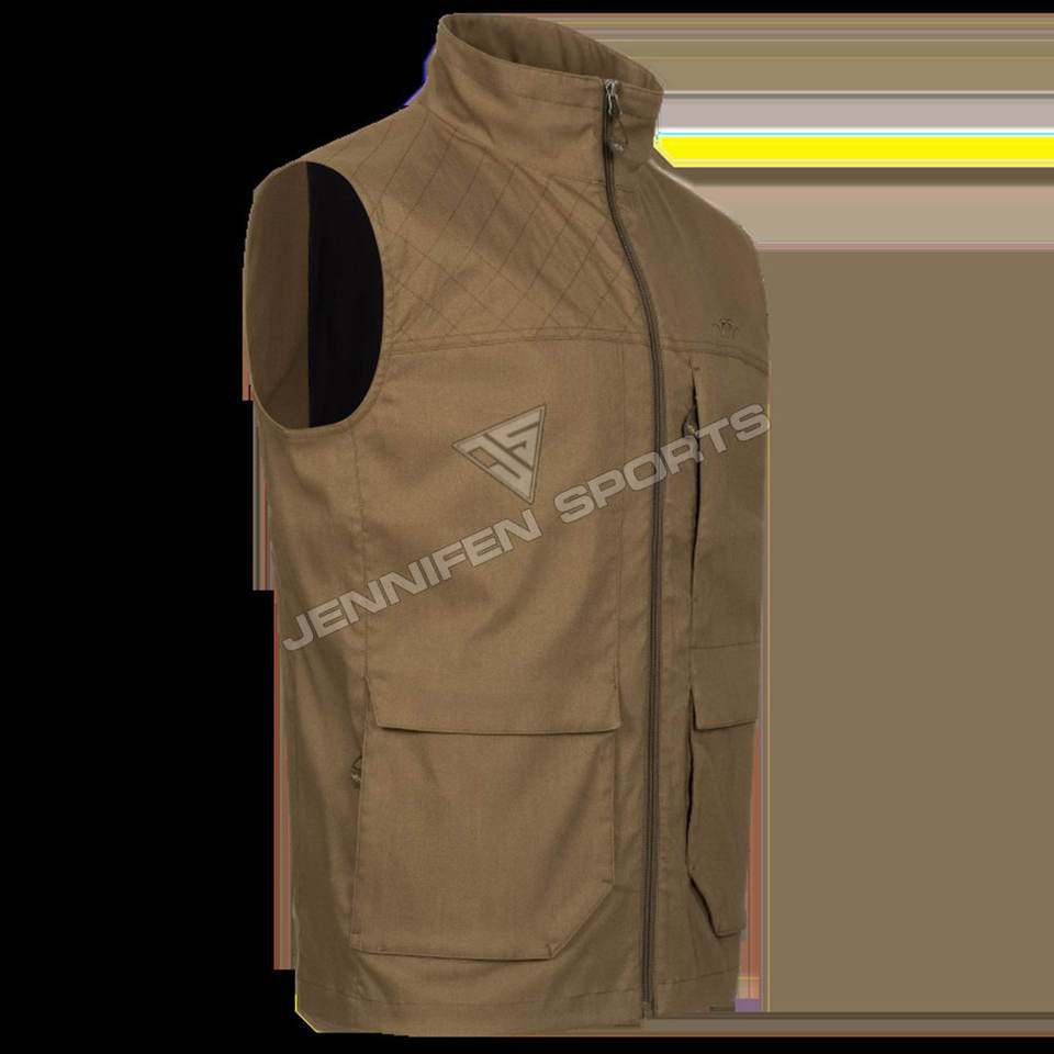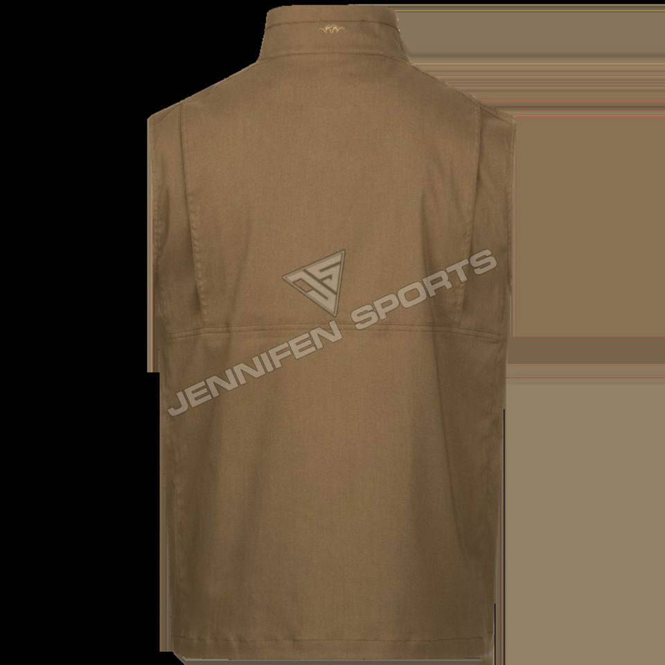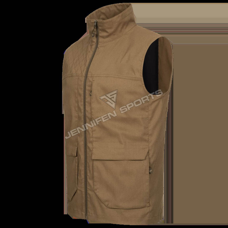 Gilet de chasse personnalisé hommes coquille matériel 100% coton toile tissu fermeture éclair poches avant à l'intérieur tissé étiquette de cou