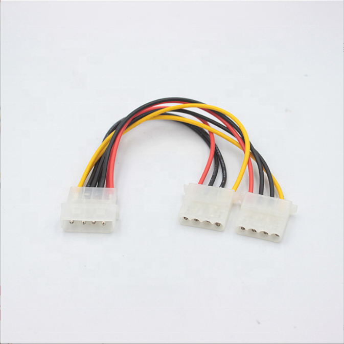Câble diviseur d'alimentation de ventilateur IDE personnalisé 4 broches Molex mâle à double 4 broches femelle câble d'alimentation 18awg 16awg fil de cuivre pour ordinateur