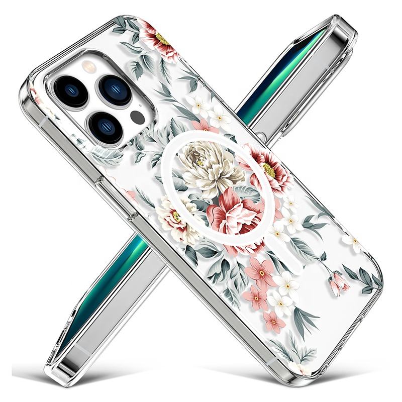 Coque de téléphone personnalisée IMD Fleur transparente magnétique à absorption de gouttes pour iPhone 12 13 14 15 Pro Max