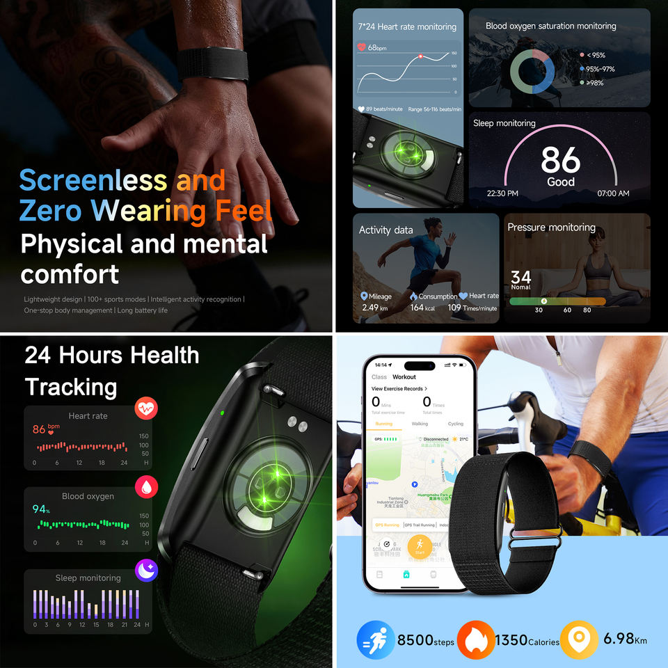Bracelet intelligent de fitness personnalisé IP68, plus de 100 modes sportifs, bracelet intelligent, détection de la santé du sommeil, longue durée de vie de la batterie, montre intelligente sans écran