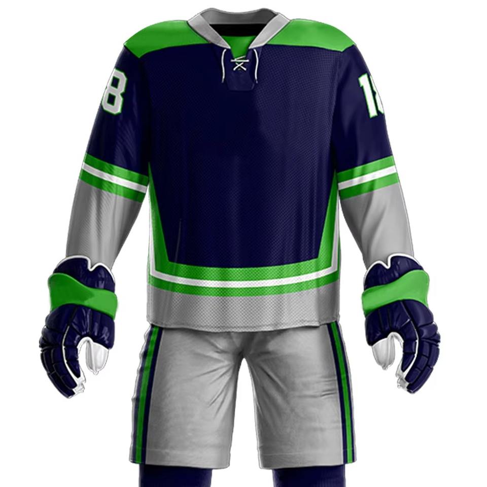 Kit d'uniformes de hockey sur glace personnalisés avec graphismes sublimés et technologie de couleur longue durée pour l'identité d'équipe