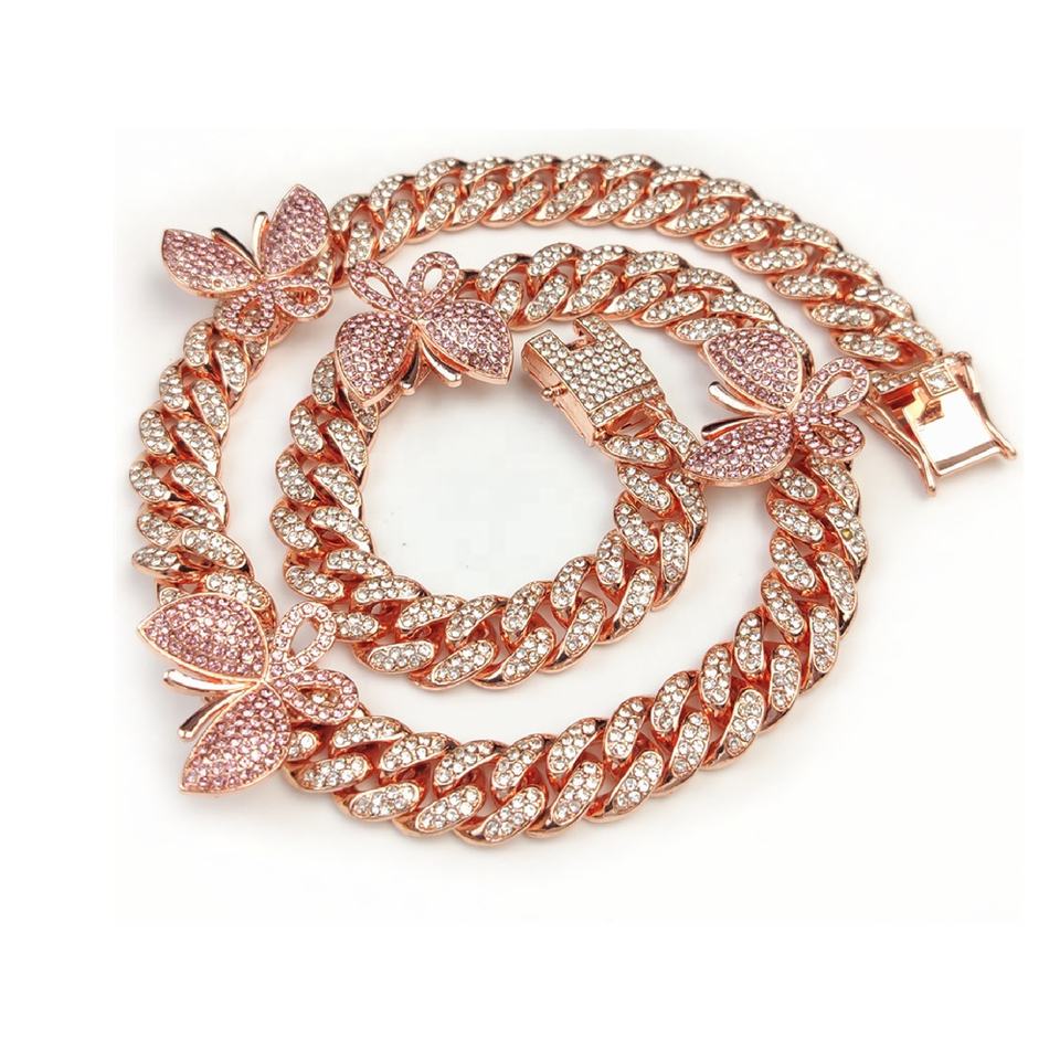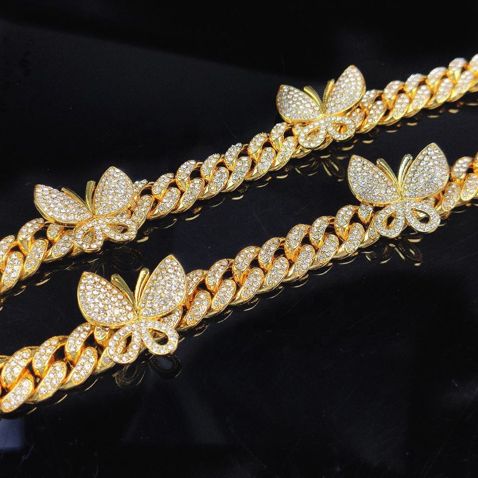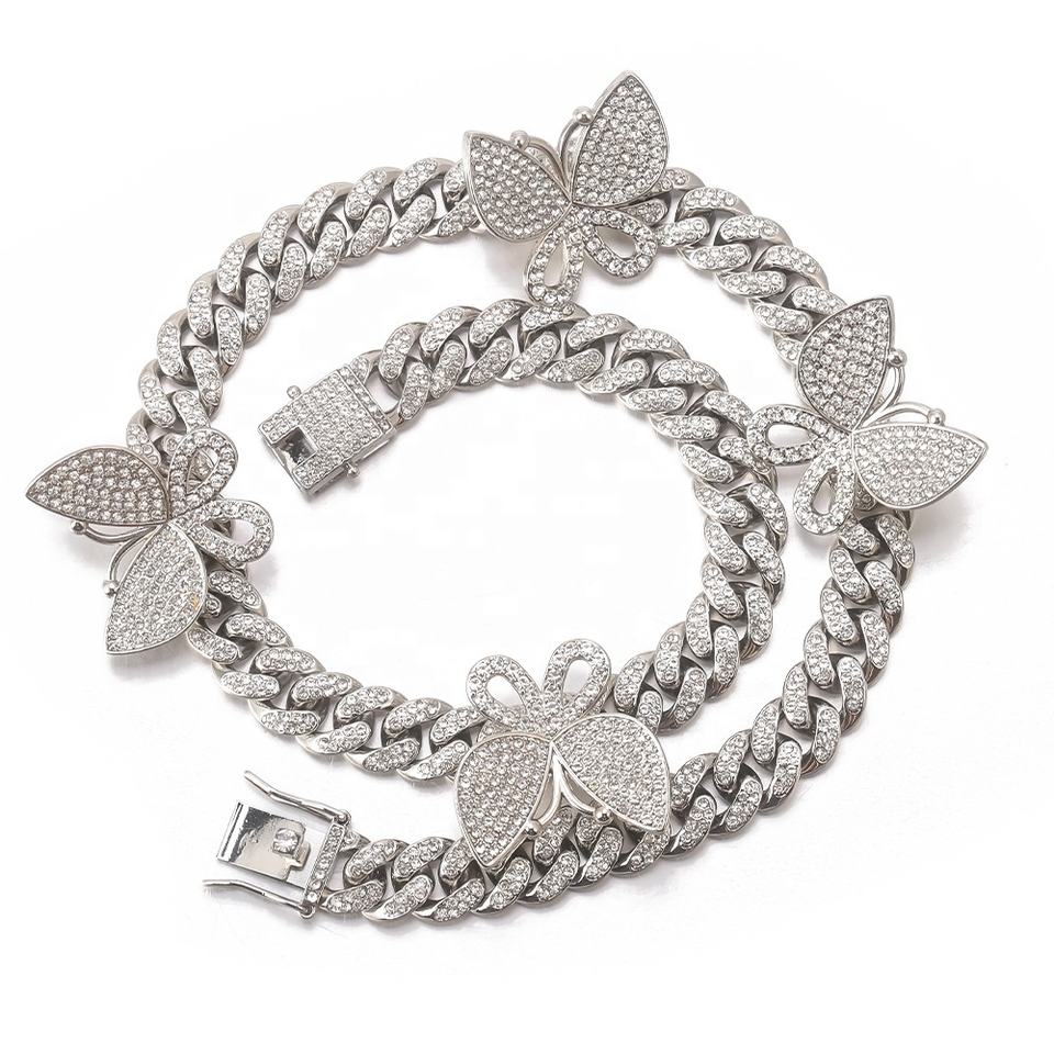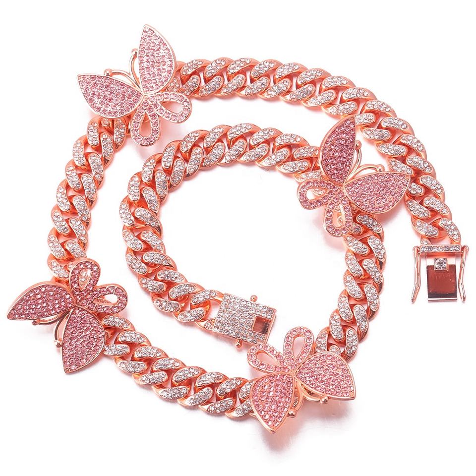 Chaîne à maillons cubains Ice Out papillon personnalisé collier à breloques bijoux