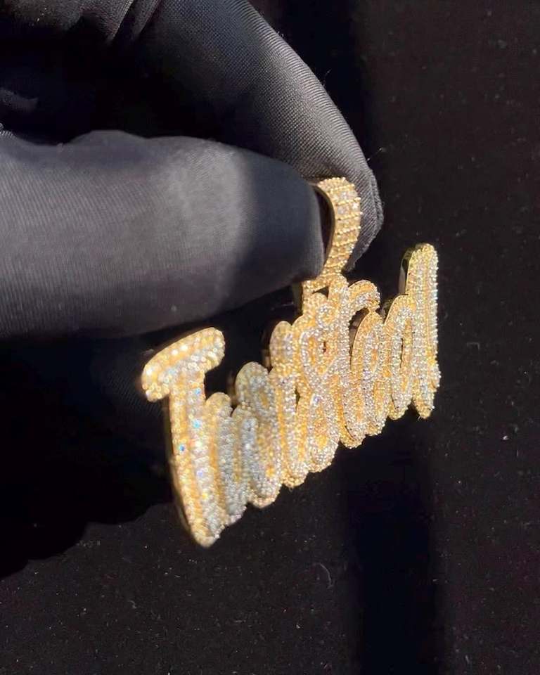 Pendentif personnalisé en moissanite glacée avec nom, design double couche HipHop bicolore, luxe certifié, argent 925, cadeaux