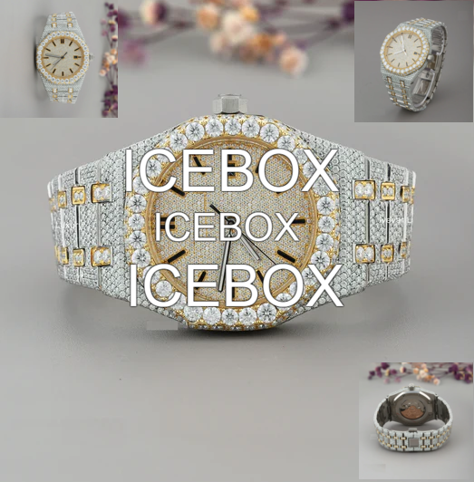 Montre numérique personnalisée en acier inoxydable bicolore avec verre Moissanite, étanche 10 bars, fermoir bracelet, incrustation de pierres VVS