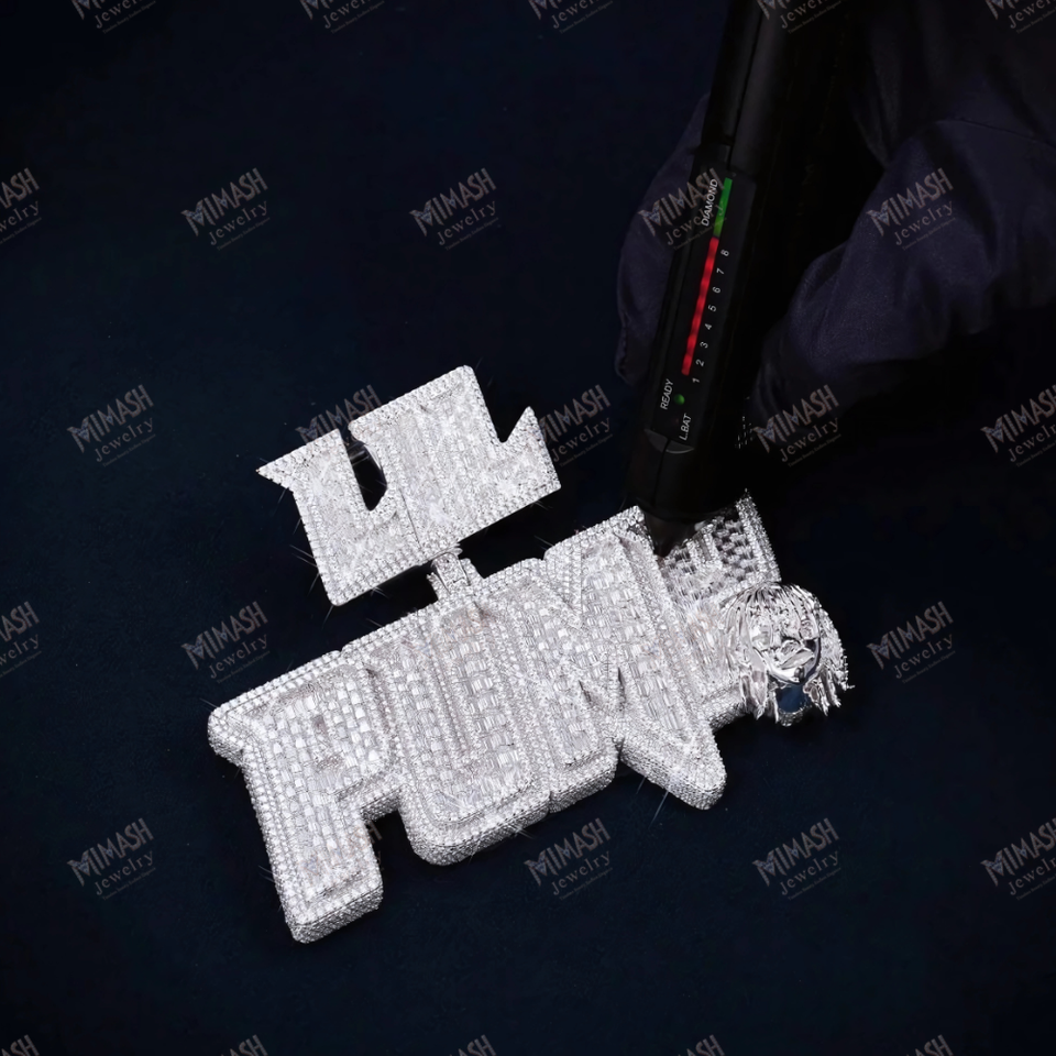 Pendentif en diamant glacé personnalisé avec motif de nom «LIL PUMP», bijou en moissanite entièrement buste avec breloque de tête unique