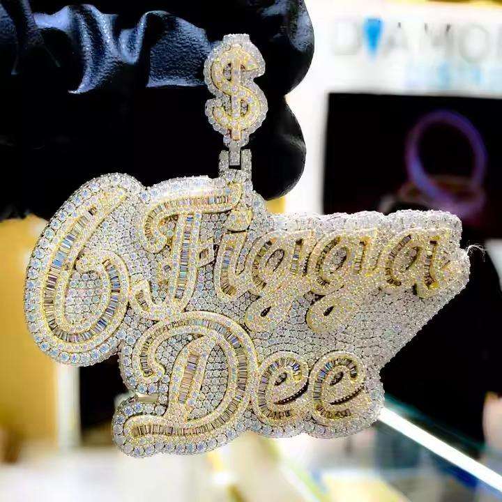 Pendentif personnalisé Iced Out Frogga Dee en Moissanite, Bijoux Hip Hop de Luxe, Chaîne à Lettres Plaqué Or 18K, Argent 925