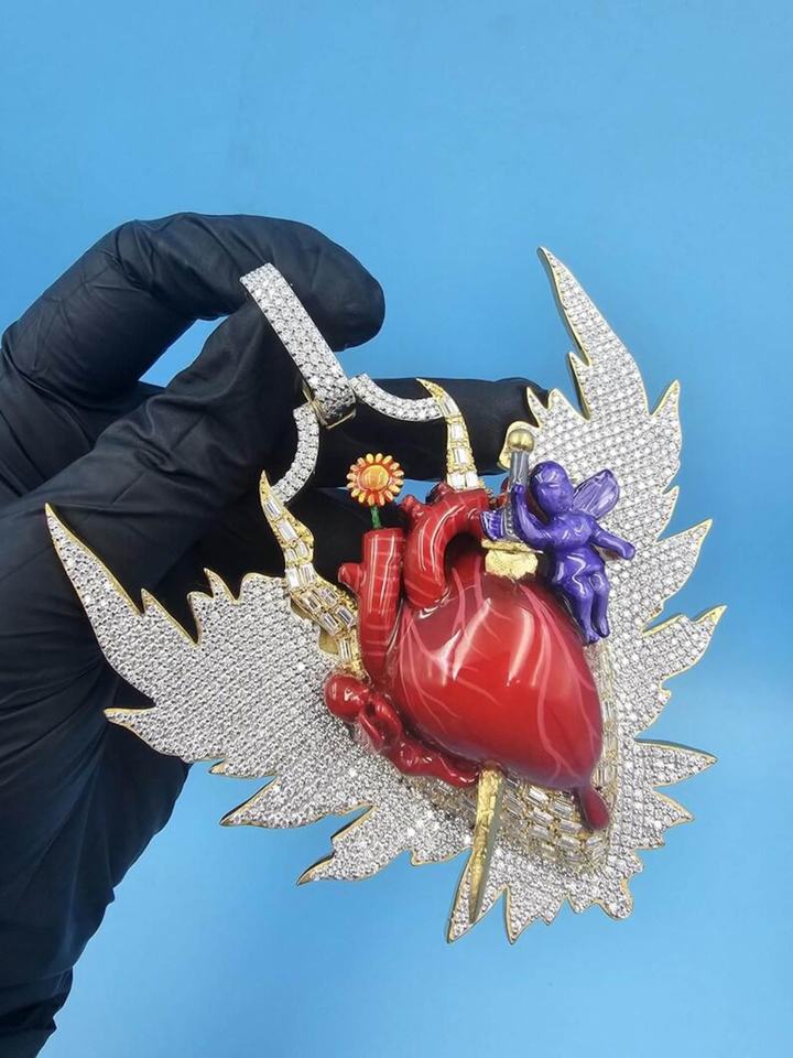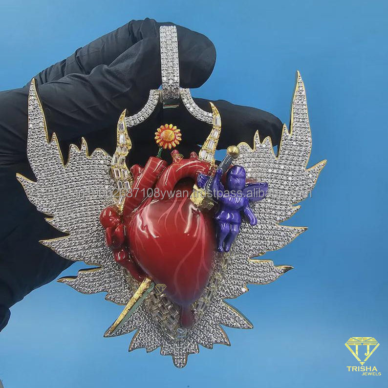 Pendentif Cœur Personnalisé avec Ailes, Sertie de Diamants VVS Cultivés en Laboratoire, en Argent Sterling 925, Bijoux Hip Hop pour Hommes