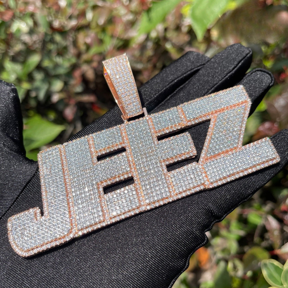 Pendentif personnalisé en moissanite avec lettres en bloc, design de nom glacé, couleur VVS D, argent 925 plaqué or, bijoux hip-hop, OEM ODM en gros