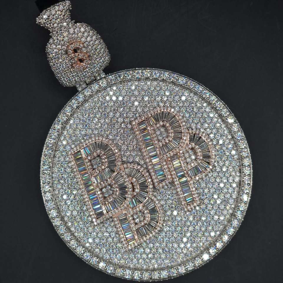 Pendentif rond en argent sterling avec moissanite glacée personnalisée, style chrétien, BBPP, aspect diamant VVS, mignon