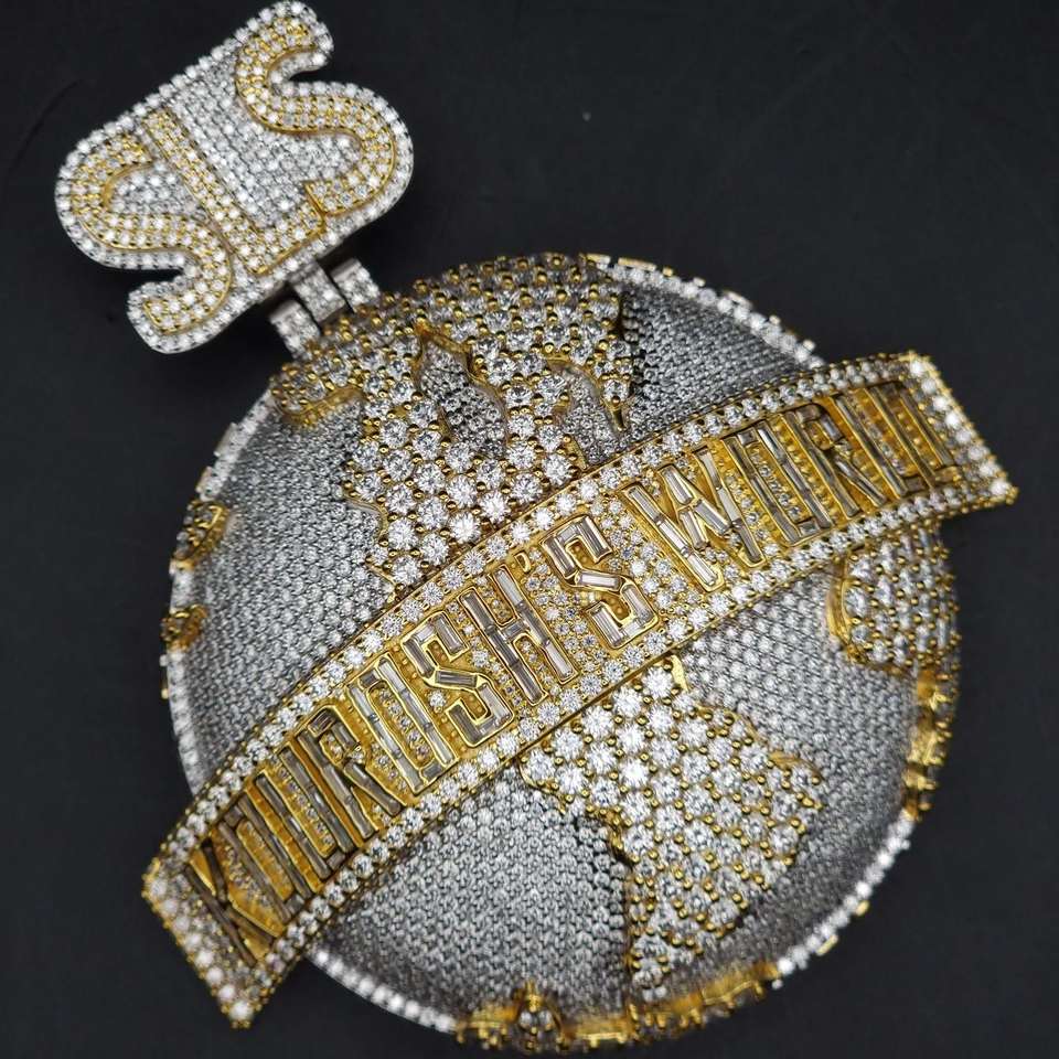 Pendentif personnalisé en moissanite sertie de pierres, style hip-hop, en or rose et argent, pour soirée, pièce de chaîne tendance