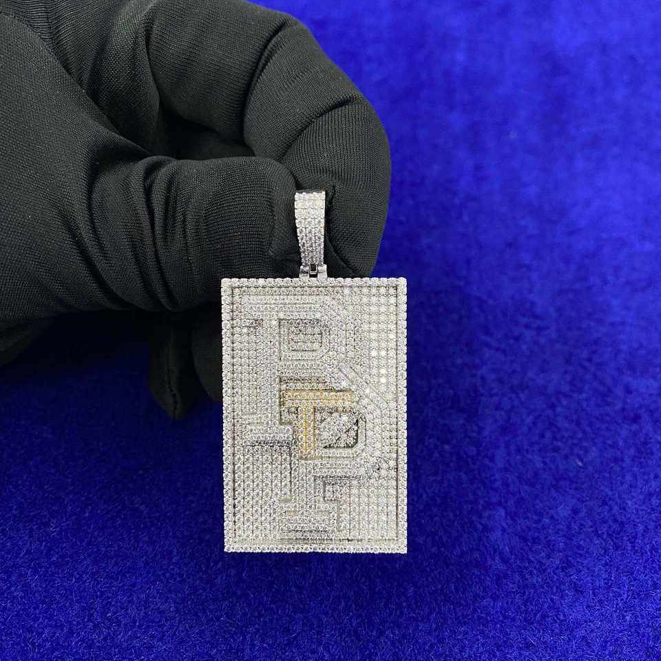 Pendentif barre personnalisé en moissanite glacée, deux tons, aspect diamant VVS, style hip-hop