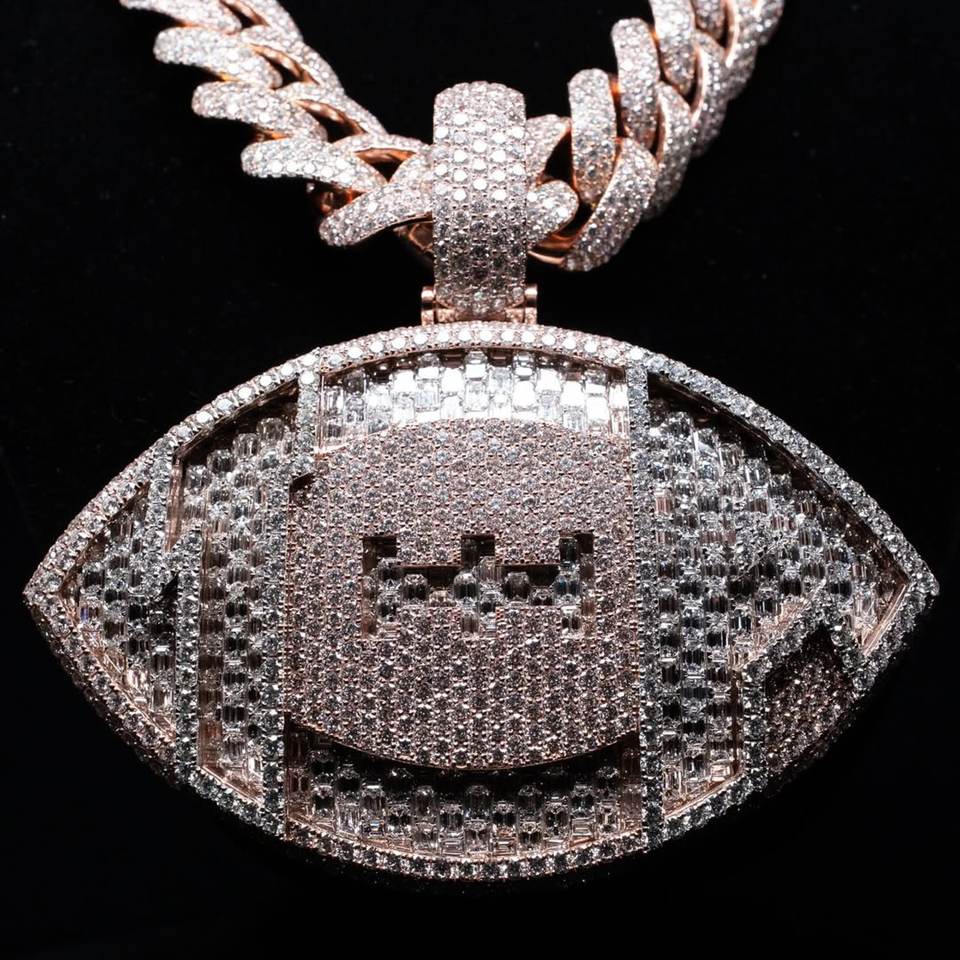 Pendentif de rugby personnalisé serti de pierres | Argent sterling 925 | Moissanite VVS | Micro-pavé | Bijoux Hip Hop