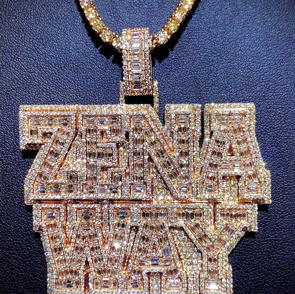 Pendentif Lettre ZENA WAY Personnalisé Sertie de Pierres, Plaqué Or Rose et Argent avec Moissanite VVS, Bijoux Hip Hop Unisexe pour Fête