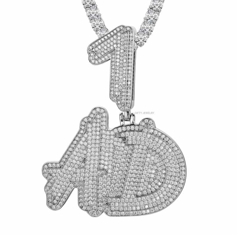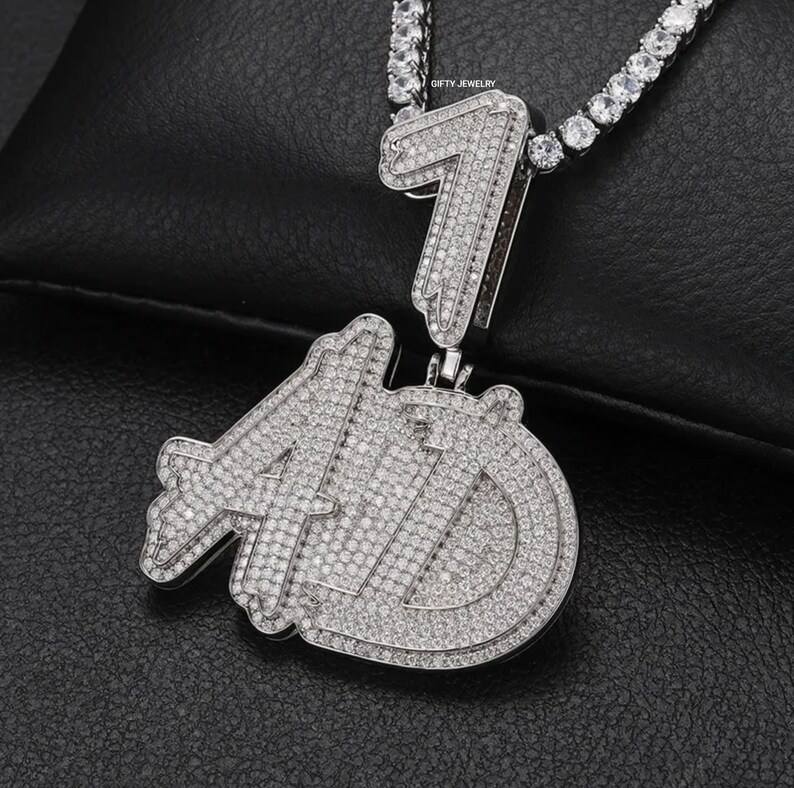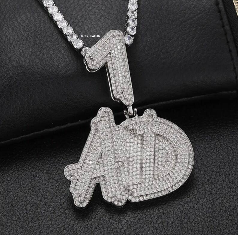 Pendentif personnalisé avec lettres et chiffres sertis de pierres, style Hip Hop, pendentif nom à deux lettres, bling, pour rappeur, pour cadeaux de bijoux