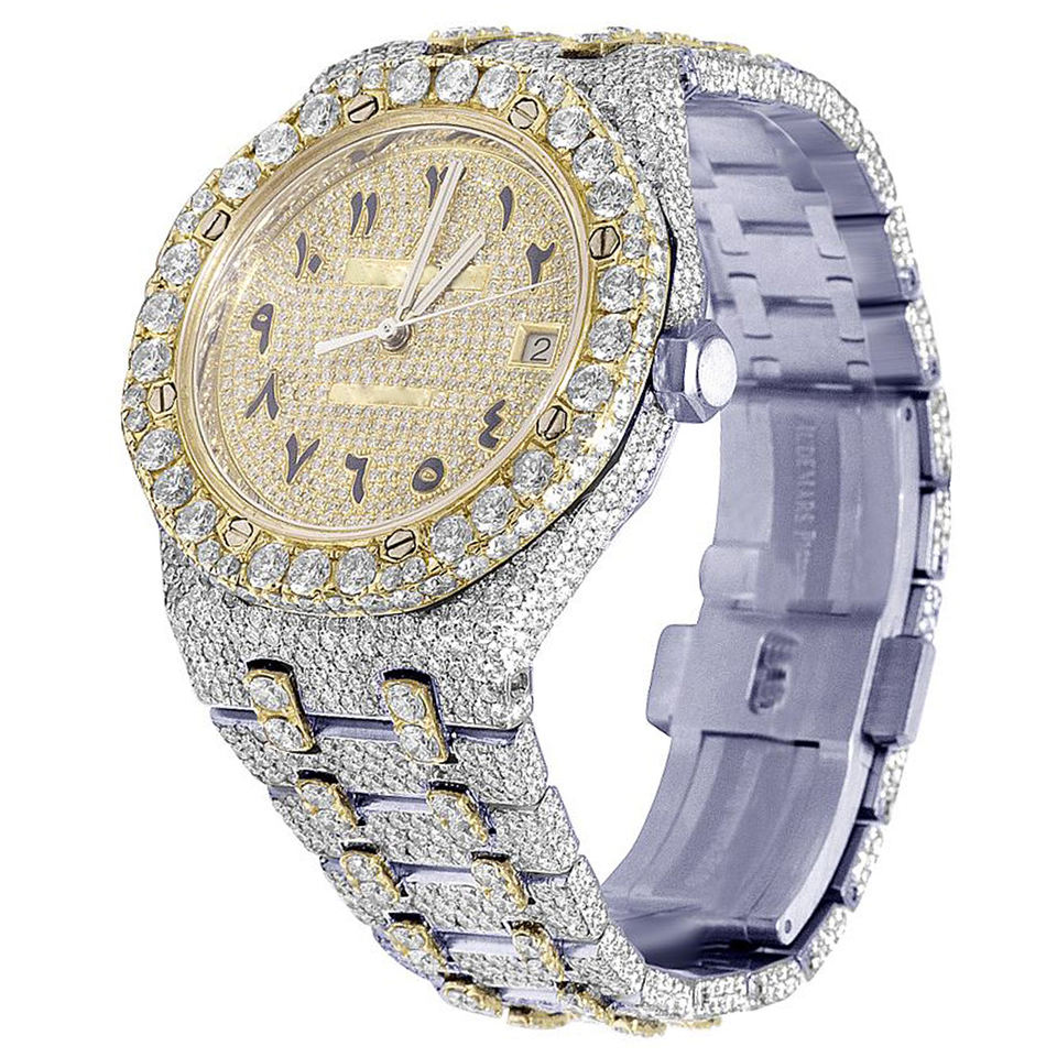 Montre personnalisée tendance Icedout avec mouvement à quartz, en acier inoxydable, diamants VVS Moissanite, bijoux de luxe Hip Hop, verre