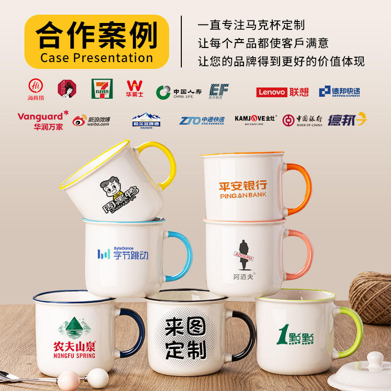 Mug en céramique imitation émail personnalisé, simple, rond, impression de logo pour cadeaux publicitaires, promotion commerciale