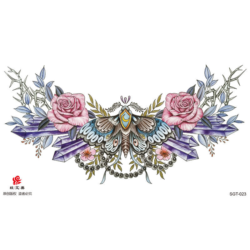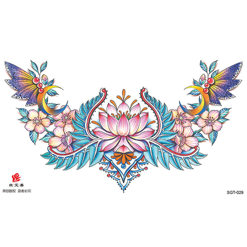 Autocollants de tatouage temporaire pour femmes, motifs papillon et fleur indiens personnalisés, sexy, pour la poitrine, le cou ou le dos, art corporel