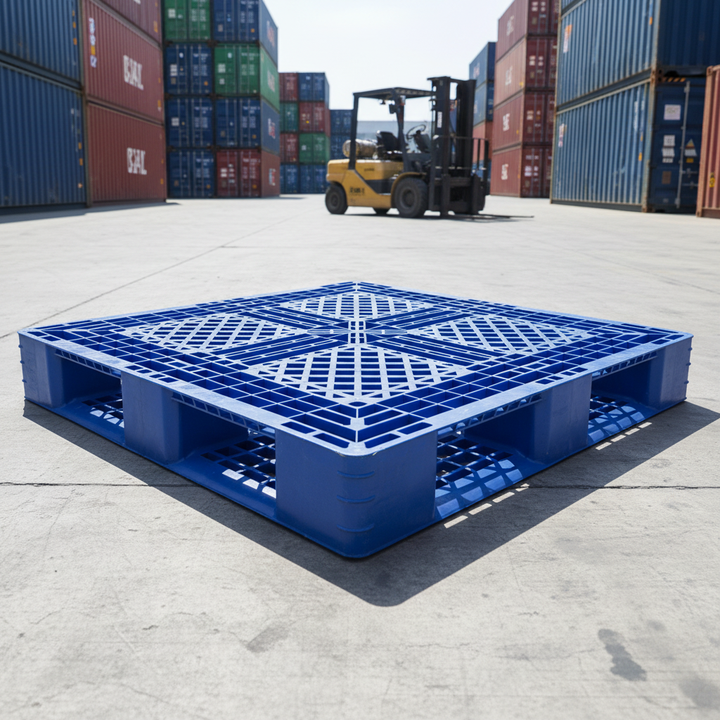 Palette en plastique Euro industrielle personnalisée à 4 voies pour charges lourdes avec logo, design à nervures croisées et grille, conçue pour le poids de vos produits
