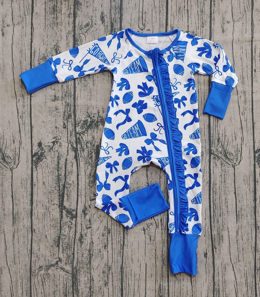 Custom Infant baby girl Purple bows football print kids wholesale romper long sleeve jumpsuit child cute sleeper set