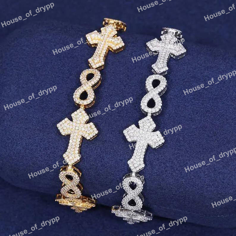 Bracelet en argent sterling 925 avec diamants moissanite, design croix et infini style hip-hop, pour homme et femme