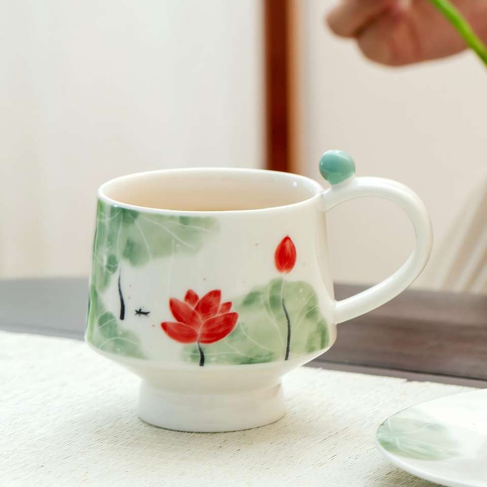 Coffret Cadeau Bouilloire en Céramique Personnalisée Style National, Tasse et Soucoupe Lotus Sous Glaçure, Haute Valeur Esthétique
