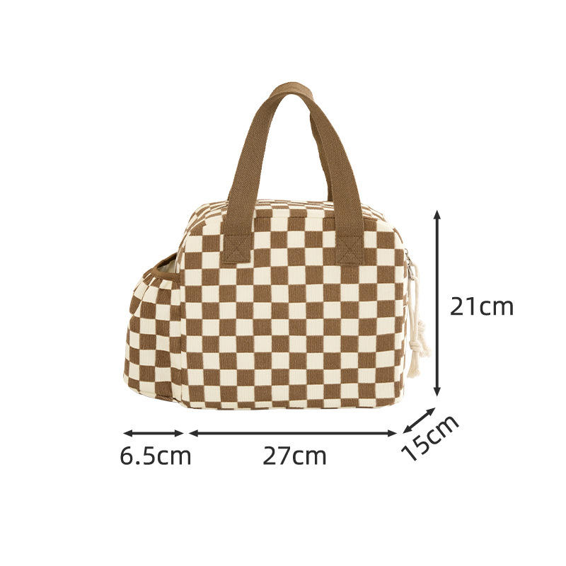 Sac à lunch isotherme personnalisé, grande capacité, feuille d'aluminium épaisse, motif à carreaux beige, pour usage extérieur