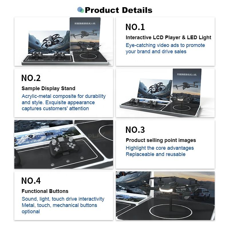 Support d'affichage de bureau en acrylique en forme de L interactif personnalisé avec lecteur audio-vidéo LCD et éclairage LED pour magasin de détail numérique