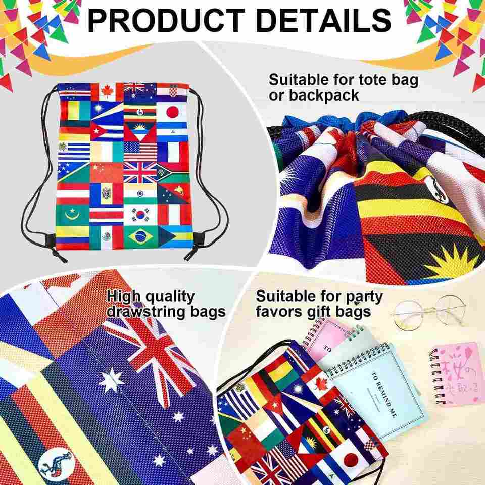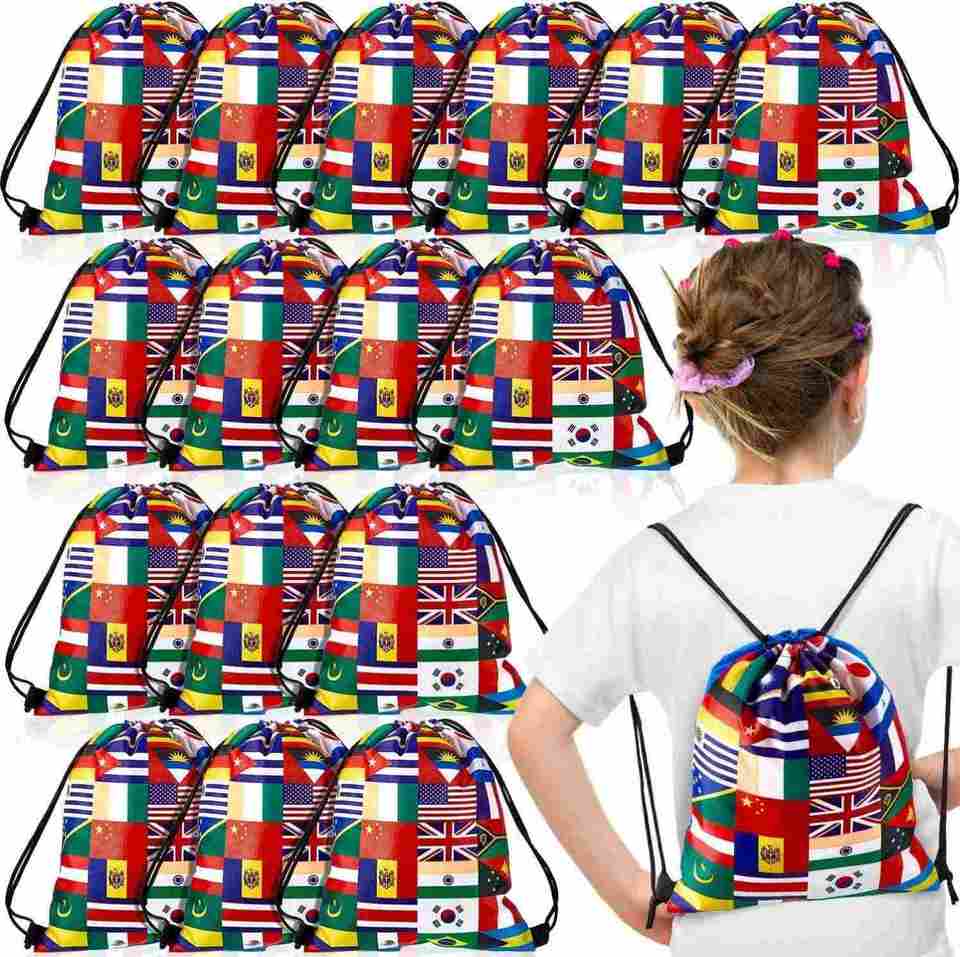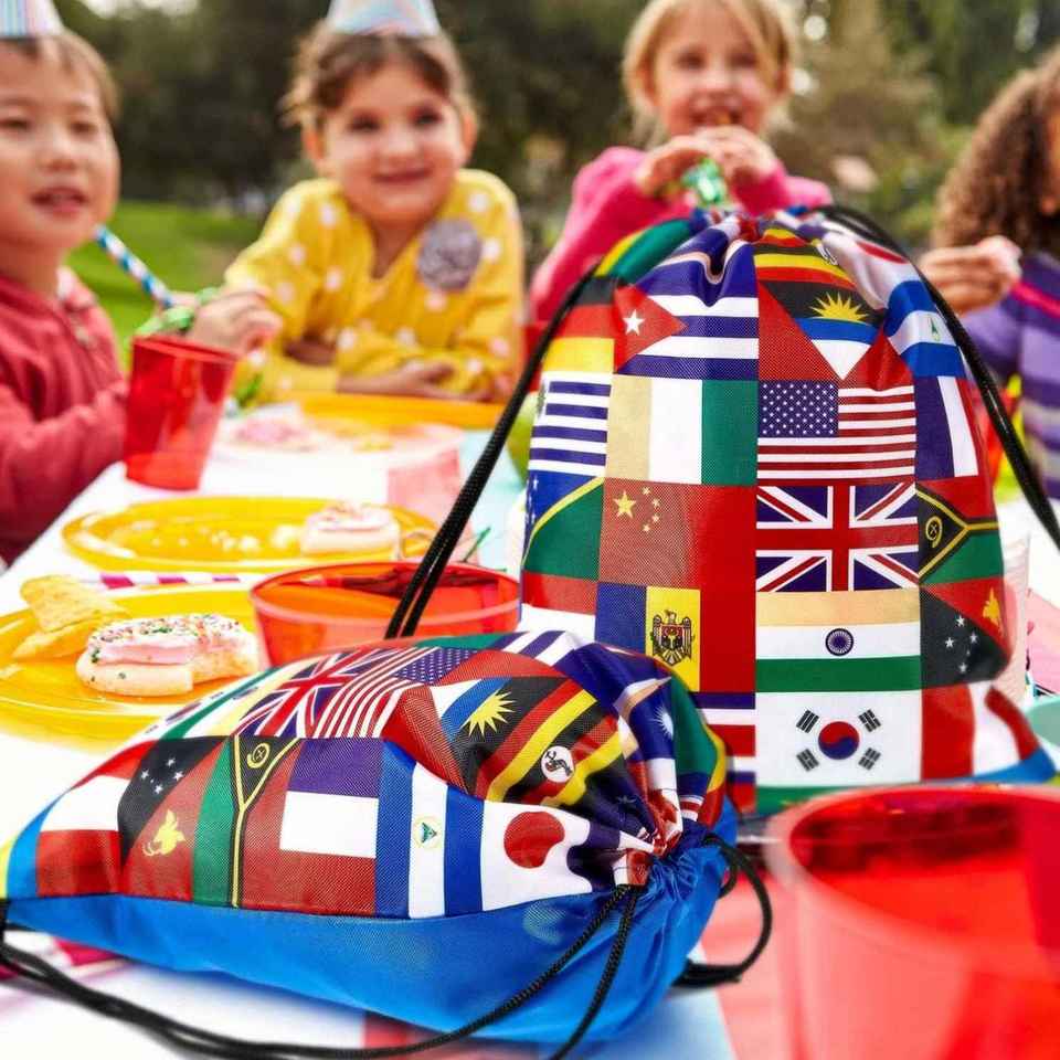 Sacs à cordon personnalisés avec drapeaux internationaux, sacs cadeaux pour fêtes d'anniversaire pour enfants, sacs de rangement pour collations et bonbons, polyester imperméable