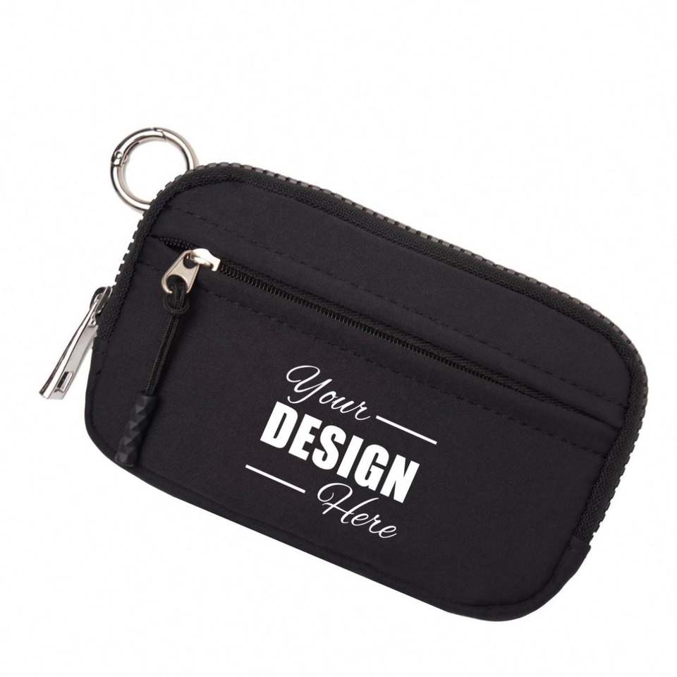 Porte-clés portefeuille Iris personnalisé - Étui à cartes noir avec fermeture éclair et fenêtre d'identification pour cadeau promotionnel, design compact et élégant